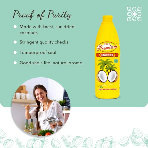 GKD’s Premium Coconut Oil contains quality roasted and scientifically micro-filtered pure edible coconut oil processed from specially selected copra. It contains healthy fatty acids and contains no cholesterol or trans-fat. Hence, it is a healthy choice for the heart too.